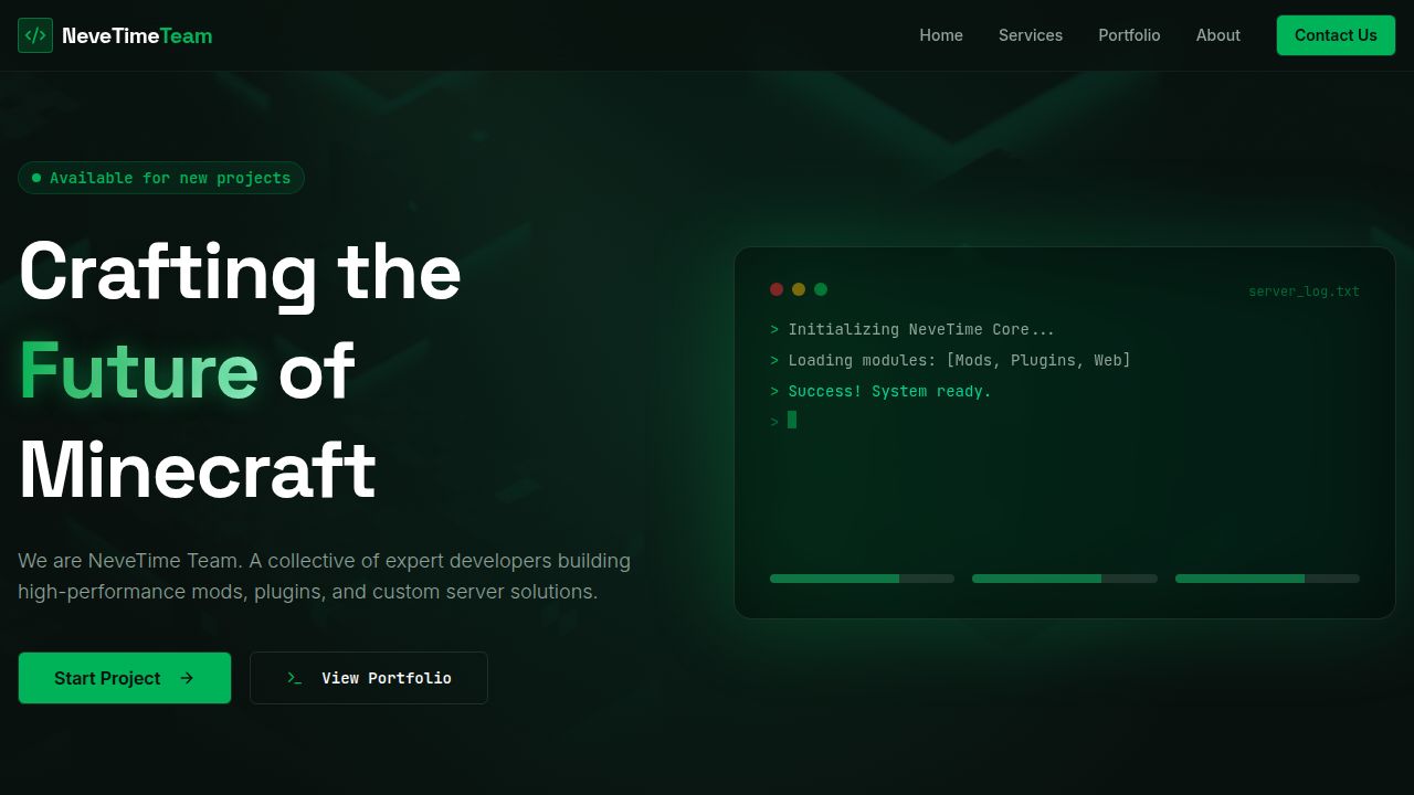 Integrates new Hero, Services, Portfolio, Navbar, and Footer components, customizes `index.html` with meta tags and fonts, and updates routing in `App.tsx` for the NeveTime Team landing page. Replit-Commit-Author: Agent Replit-Commit-Session-Id: 251cdcbe-a43a-4217-bd52-93caca5808d1 Replit-Commit-Checkpoint-Type: full_checkpoint Replit-Commit-Event-Id: c84c5fa8-591b-46e5-b031-ad4376019834 Replit-Commit-Screenshot-Url: https://storage.googleapis.com/screenshot-production-us-central1/e6bb1a93-c366-4e7d-b74e-5aa29eda3fbe/251cdcbe-a43a-4217-bd52-93caca5808d1/z6fL1aj Replit-Helium-Checkpoint-Created: true